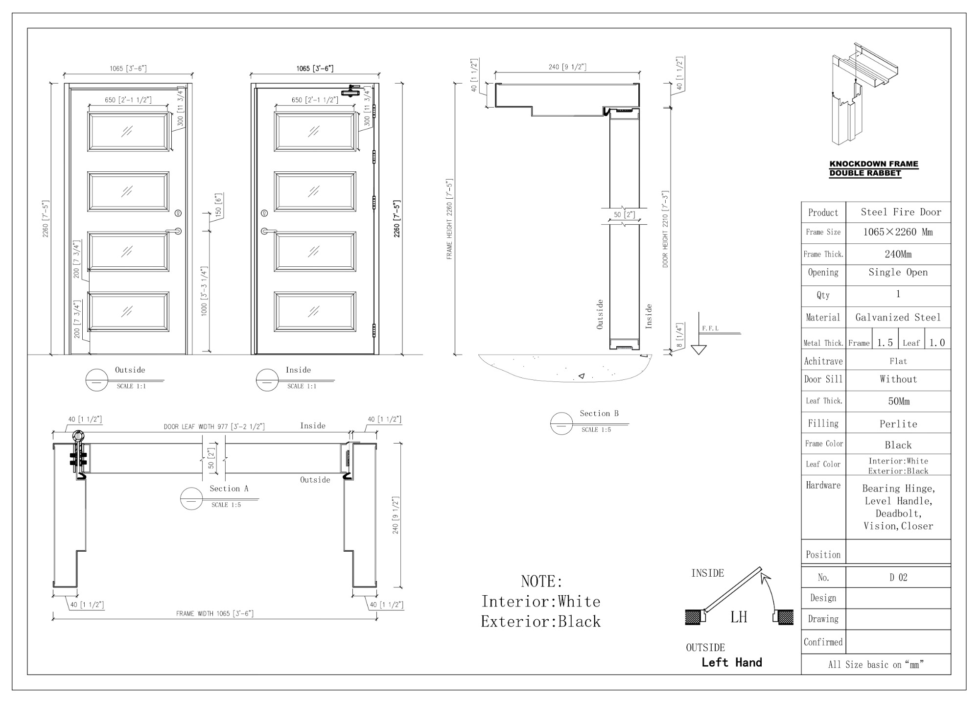 Customizable Sizes and Configurations:Our fire-rated steel doors are available in a wide range of standard and custom sizes, accommodating various architectural and design needs. The doors can be configured as single or double doors and can be outfitted with optional features such as vision panels, louvers, or custom hardware to suit specific requirements.
