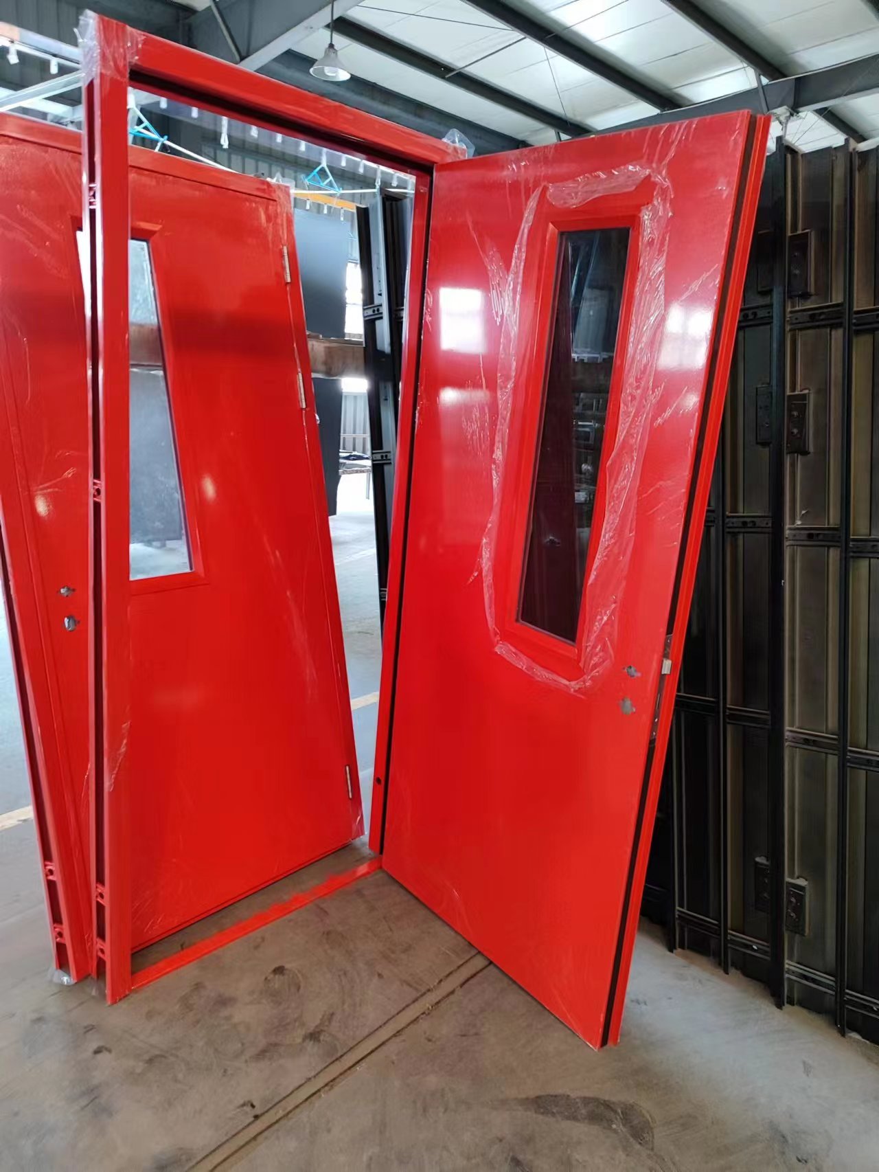 High-Quality Finish: The doors are finished with a factory-applied, powder-coated paint that provides a durable and long-lasting surface, resistant to scratches, corrosion, and fading. The doors are available in a variety of colors, allowing for seamless integration into any building design or style.